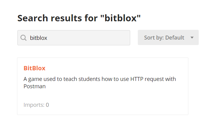 After creating your own collection, environment, and request, you must worry about documentation or everyone will get pissed at you. Thankfully, Postman autogenerates documentation on your collection. This makes it quick and easy for developers to understand all of the features of an API. In order for our workshop attendees to play our game, we had them find our collection in the Postman templates tab.
